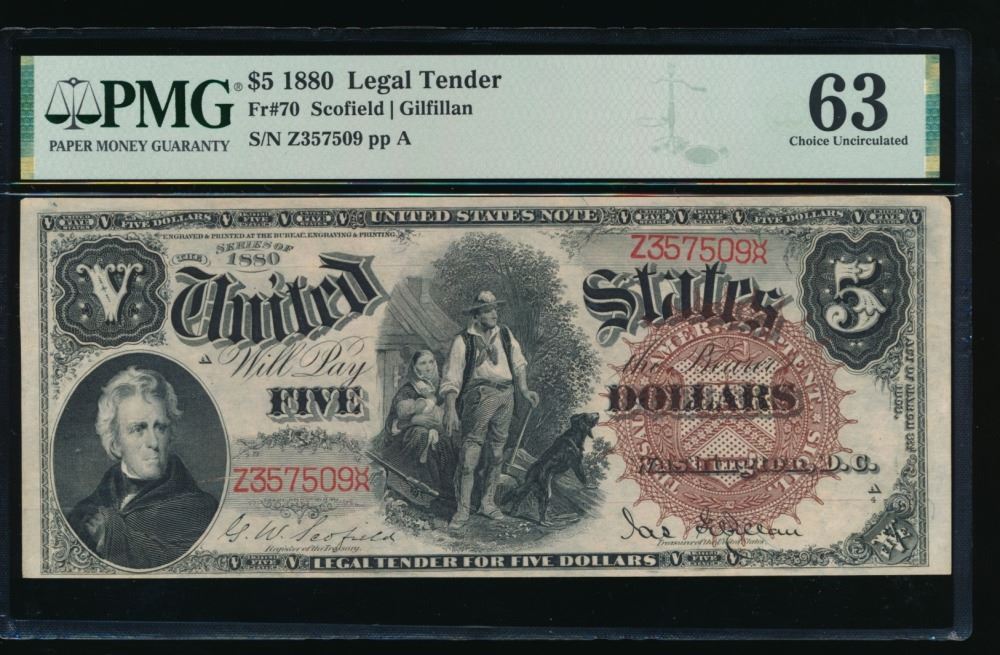 One 1880 $5 Legal Tender Note PMG 63.