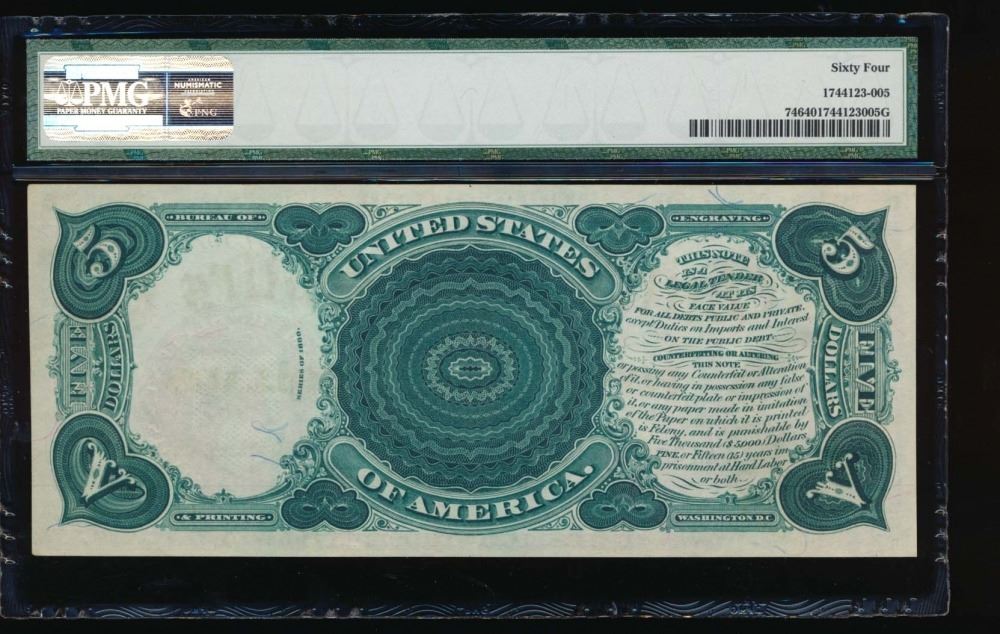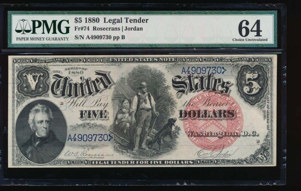 One 1880 $5 Legal Tender Note PMG 64.