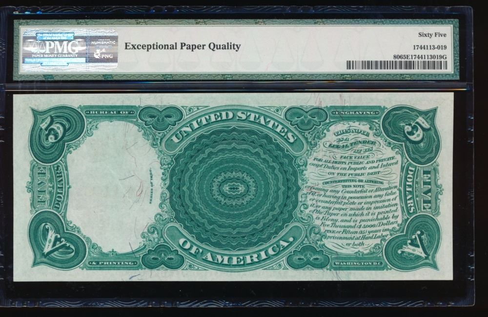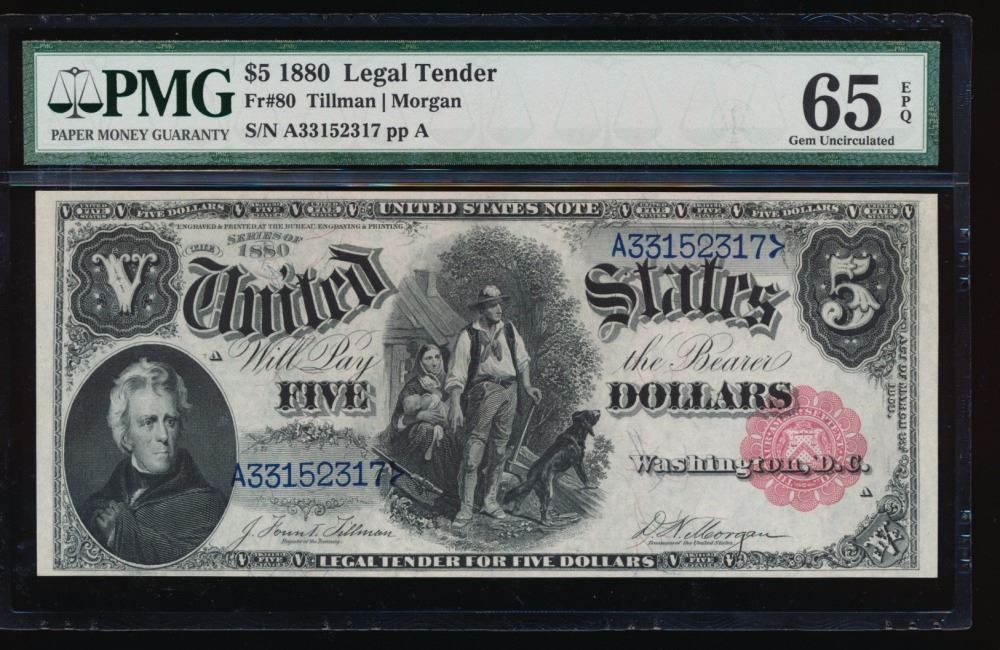One 1880 $5 Legal Tender Note PMG 65EPQ.