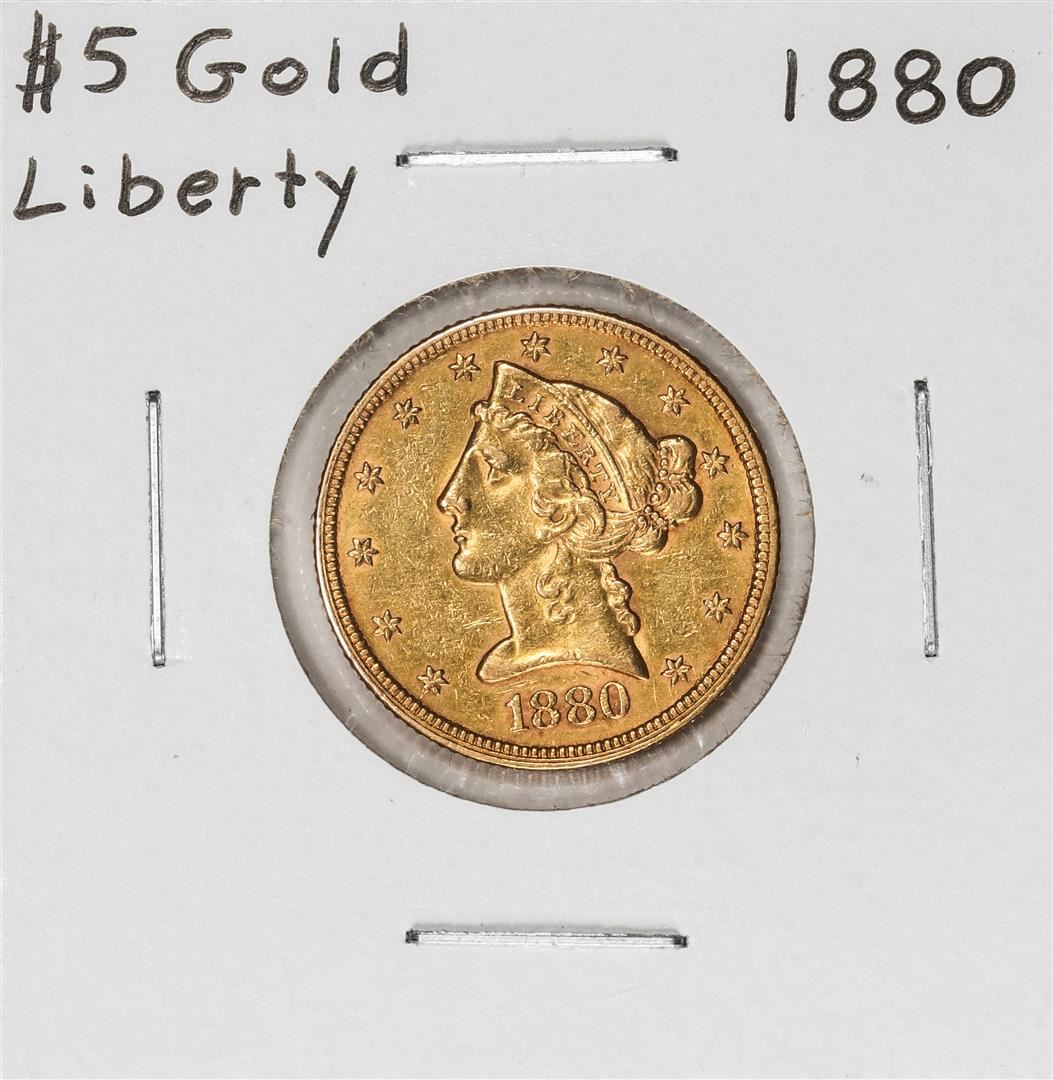 One 1880 $5 Liberty Head Half Eagle Gold Coin.