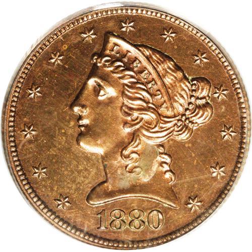 1880 $5 Liberty Head Half Eagle, Judd-1663, Pollock-18