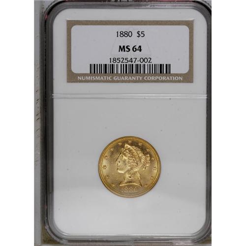 1880 $5 MS64 NGC. The highly lustrous and rather flash
