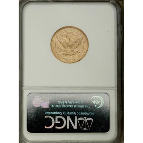 <B>1880 $5 MS64 NGC.</B></I> This peach-gold near-Gem glows with pleasing luster, and exhibits sharply struck design elements, save for the usual minor softness on the eagle's neck. A few luster grazes away from full Gem classification. Census: 91 in 64, 24 finer (11/07).<BR><BR><B>Coin Engraver:</B> Christian Gobrecht<BR><BR><b>Shipping:</b> Coins & Currency (<a target="_blank" href="http://www.heritageauctions.com/common/shipping.php">view shipping information</a>)