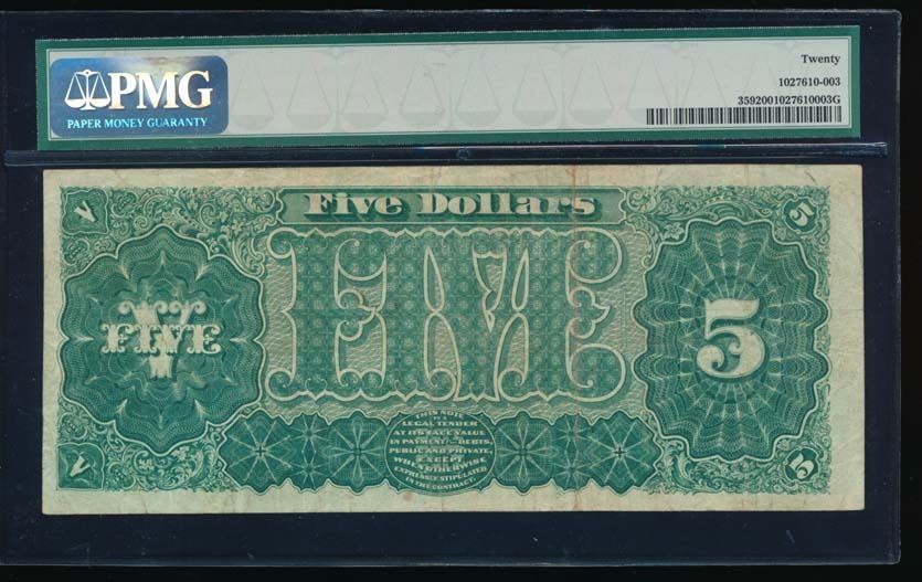 One 1880 $5 Treasury Note PMG 20.
