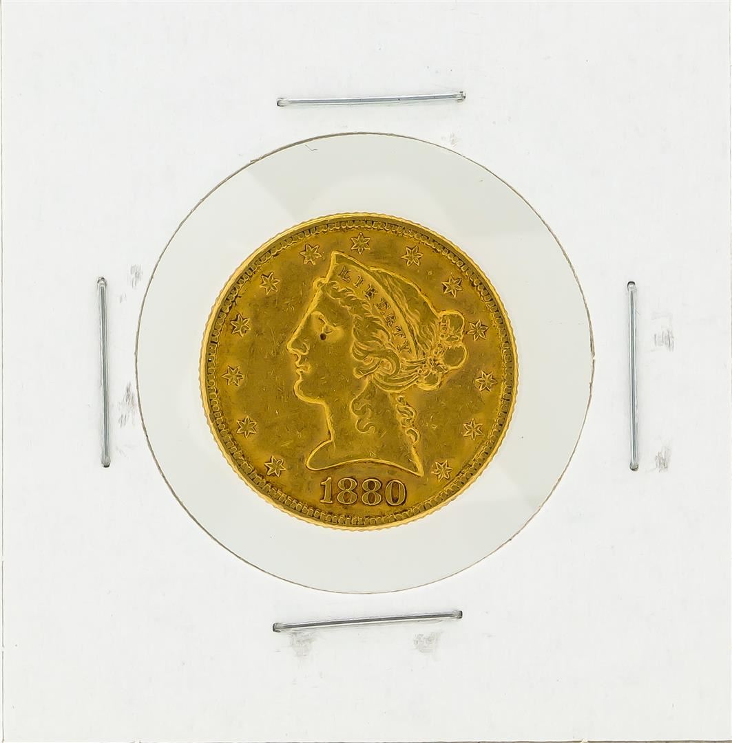 One 1880 $5 XF Liberty Head Half Eagle Gold Coin.