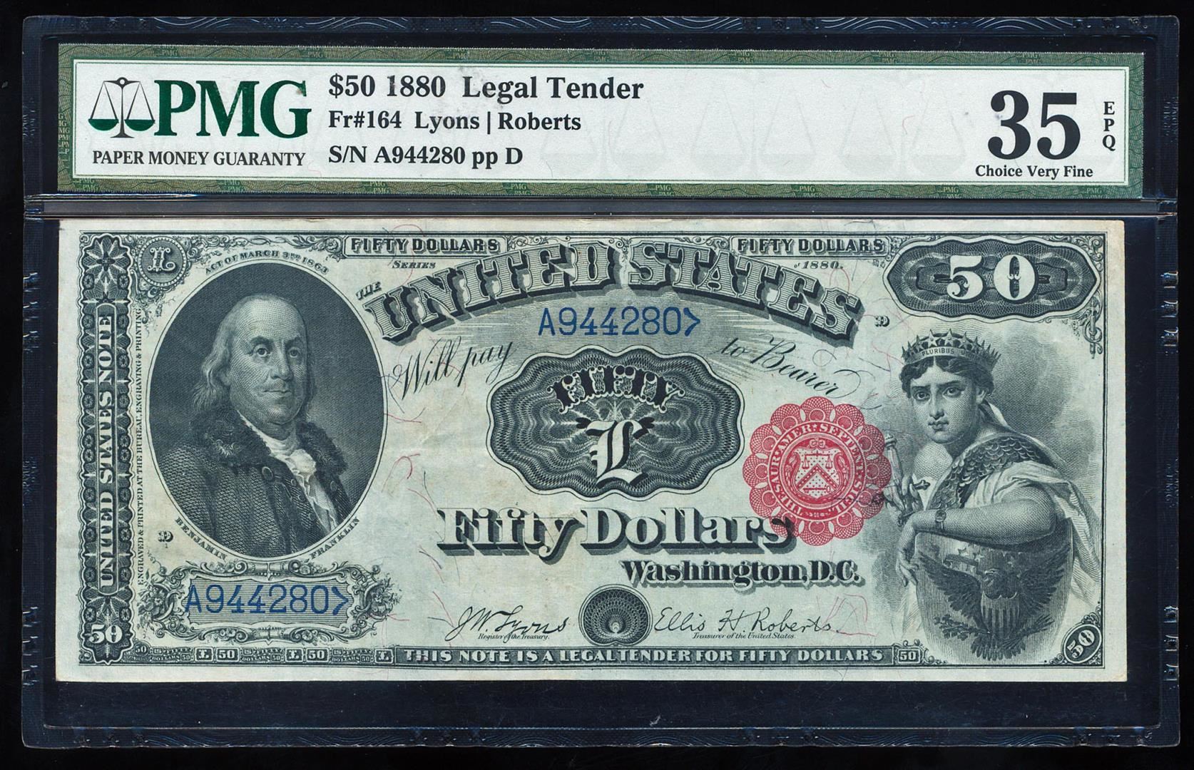 One 1880 $50 Legal Tender Note Fr.164 PMG Choice Very Fine 35EPQ. PMG Certified.