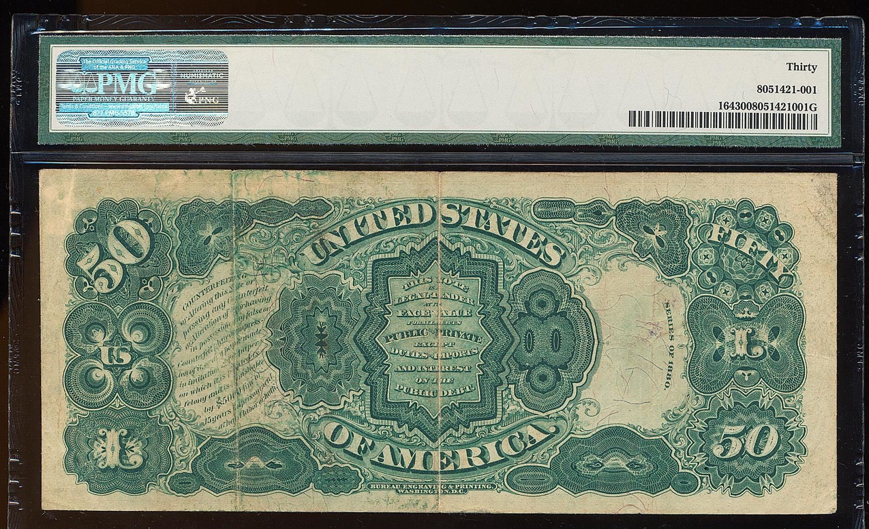 One 1880 $50 Legal Tender Note Fr.164 PMG Very Fine 30. PMG Certified.