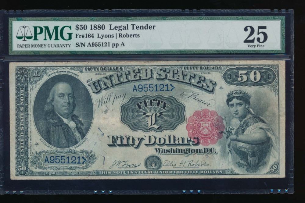 One 1880 $50 Legal Tender Note PMG 25.