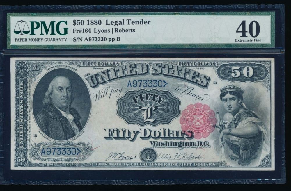 One 1880 $50 Legal Tender Note PMG 40.