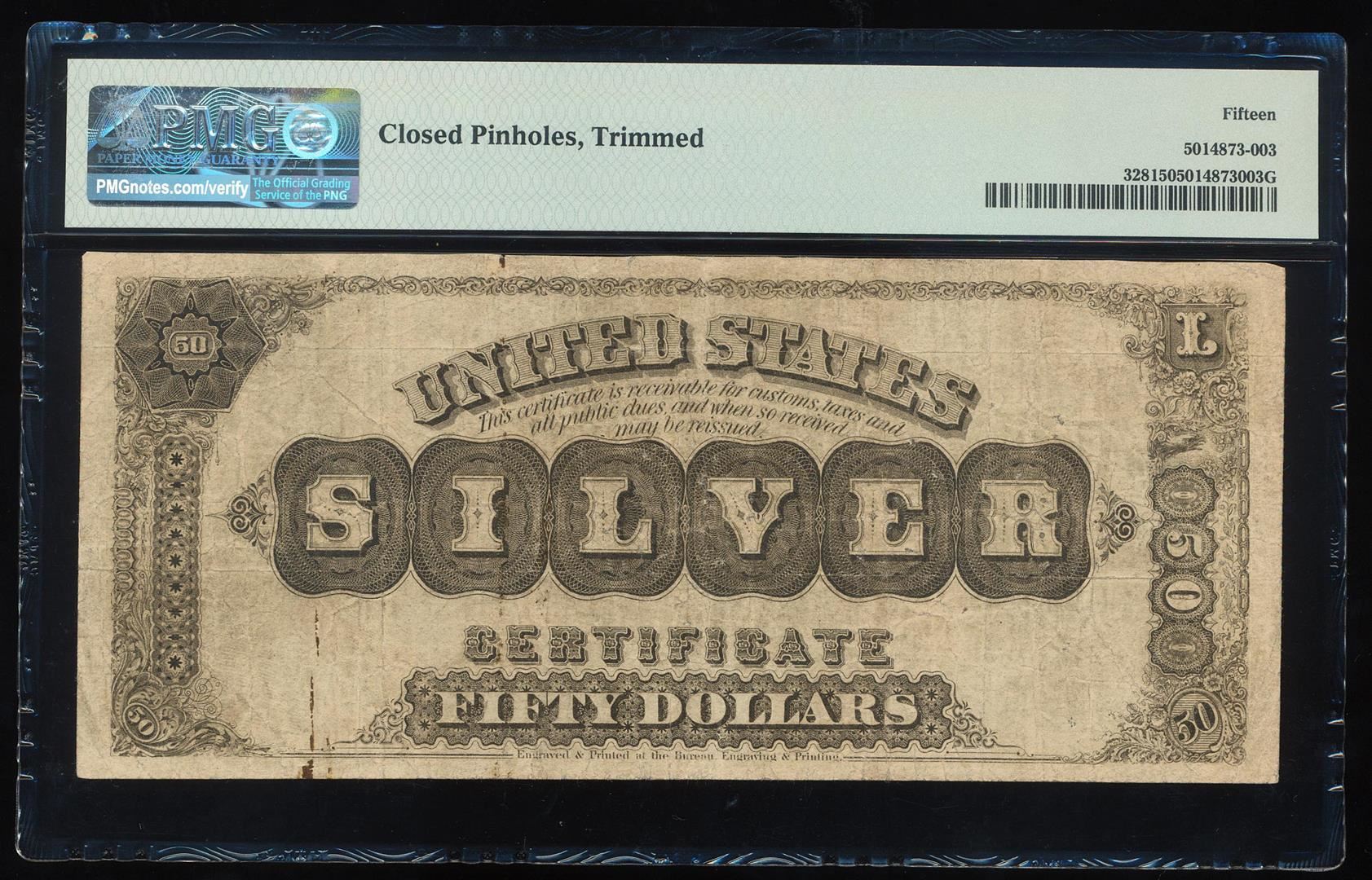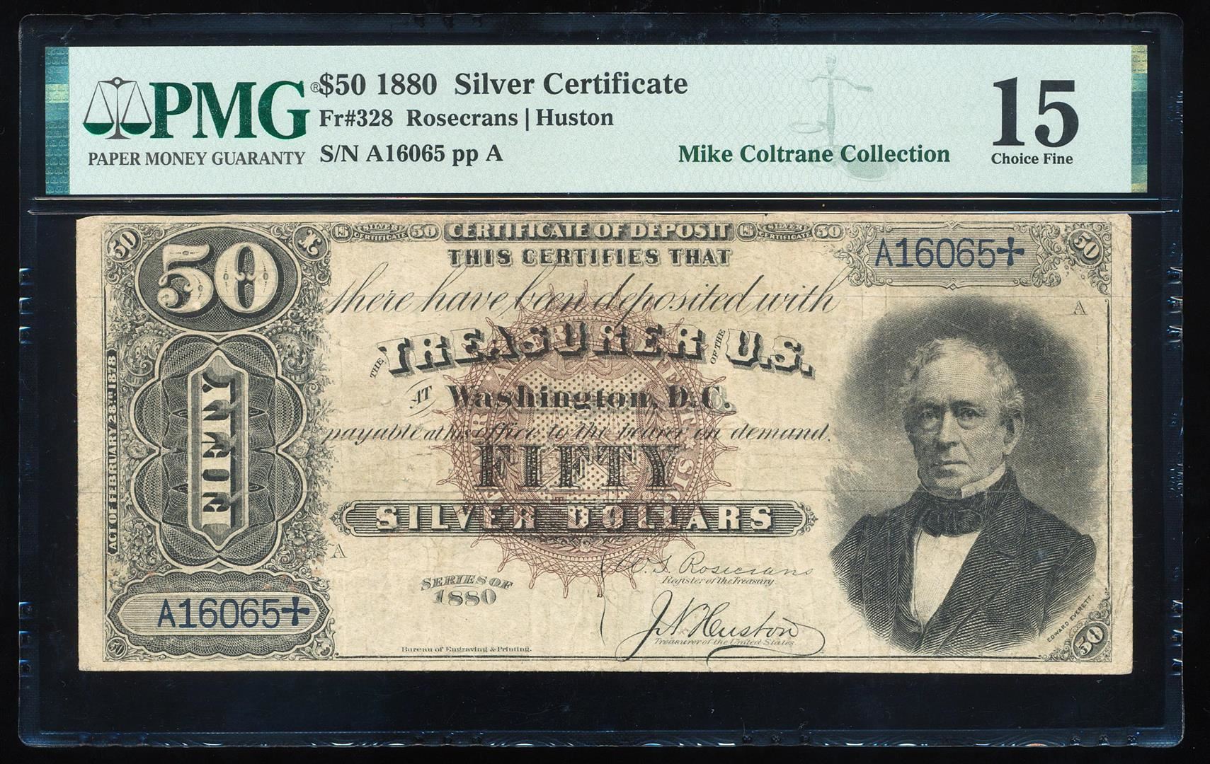 One 1880 $50 Silver Certificate Note Fr.328 PMG Choice Fine 15. PMG Certified.