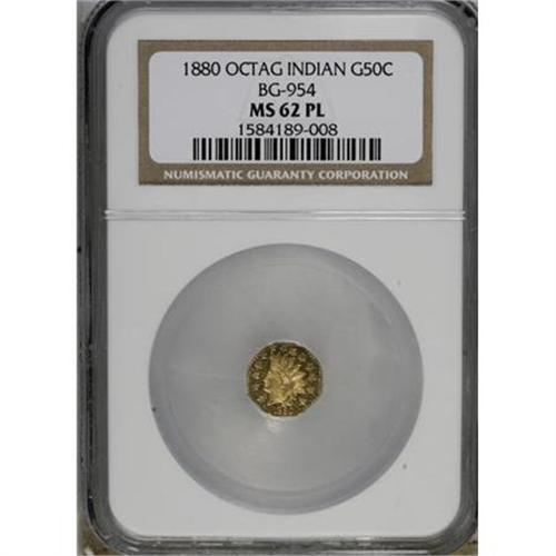 <B>1880 50C Octagonal Indian BG-954 MS62 Prooflike NGC.</B></I> NGC Census: (0/0). PCGS Population (0/0). (#710812)<BR><BR><b>Shipping:</b> Coins & Currency (<a target="_blank" href="http://www.heritageauctions.com/common/shipping.php">view shipping information</a>)