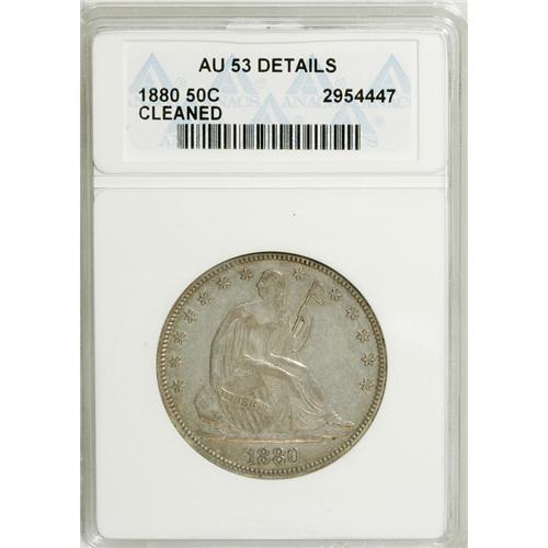 1880 50C --Cleaned--ANACS. AU53 Details. NGC Census