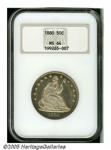 1880 50C MS64 NGC. Flashy, almost prooflike field
