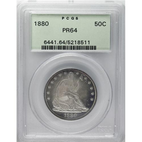 <B>1880 50C PR64 PCGS.</B></I> Type Two Reverse. Nicely mirrored with the slightest haze over the center of the obverse and tinges of golden-gray toning at the borders. Emphasis on silver dollar production reduced mintages of the smaller silver denominations to a trickle during this decade.<BR><BR><b>Shipping:</b> Coin/Currency (<a target="_blank" href="http://www.heritageauctions.com/common/shipping.php">view shipping information</a>)