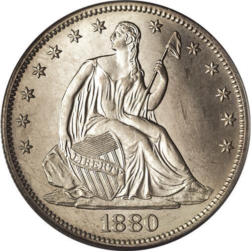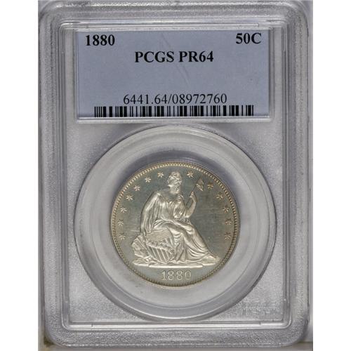 <B>1880<50C> PR64 PCGS.</B></I> Type Two Reverse. This suitably struck near-Gem features light golden-gray toning, and the reverse is remarkably smooth. The obverse field has only a few faint horizontal hairlines. The 1880 half dollar is scarce, since proofs and business strikes combined for fewer than 10,000 pieces.
