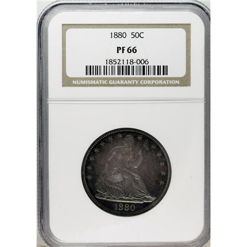 1880 50C PR66 NGC. Type Two Reverse. Jade-green, rose,