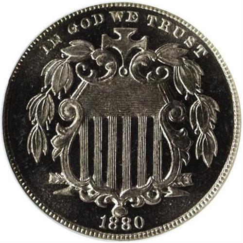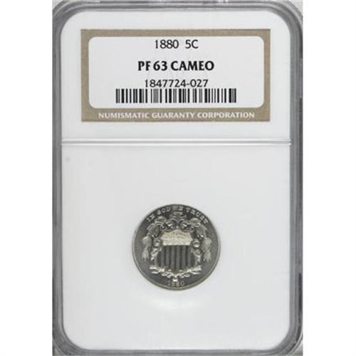 <B>1880 5C PR63 Cameo NGC.</B></I> NGC Census: (1/86). PCGS Population (3/128). (#83835)<BR><BR><b>Shipping:</b> Coins & Currency (<a target="_blank" href="http://www.heritageauctions.com/common/shipping.php">view shipping information</a>)