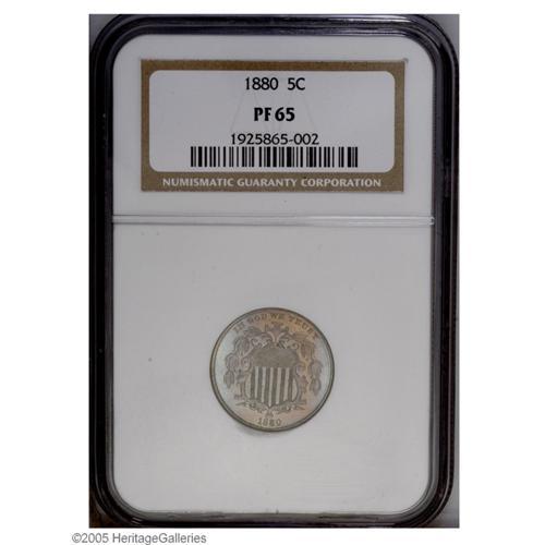 1880 5C PR65 NGC. Stunningly attractive with pleasing 1880[5C] PR65 NGC.