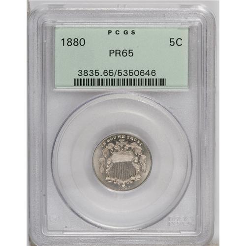 1880 5C PR65 PCGS. Untoned and deeply reflective with