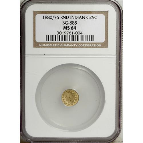 1880/76 25C Indian Round 25 Cents, BG-885, R.3, MS64 N