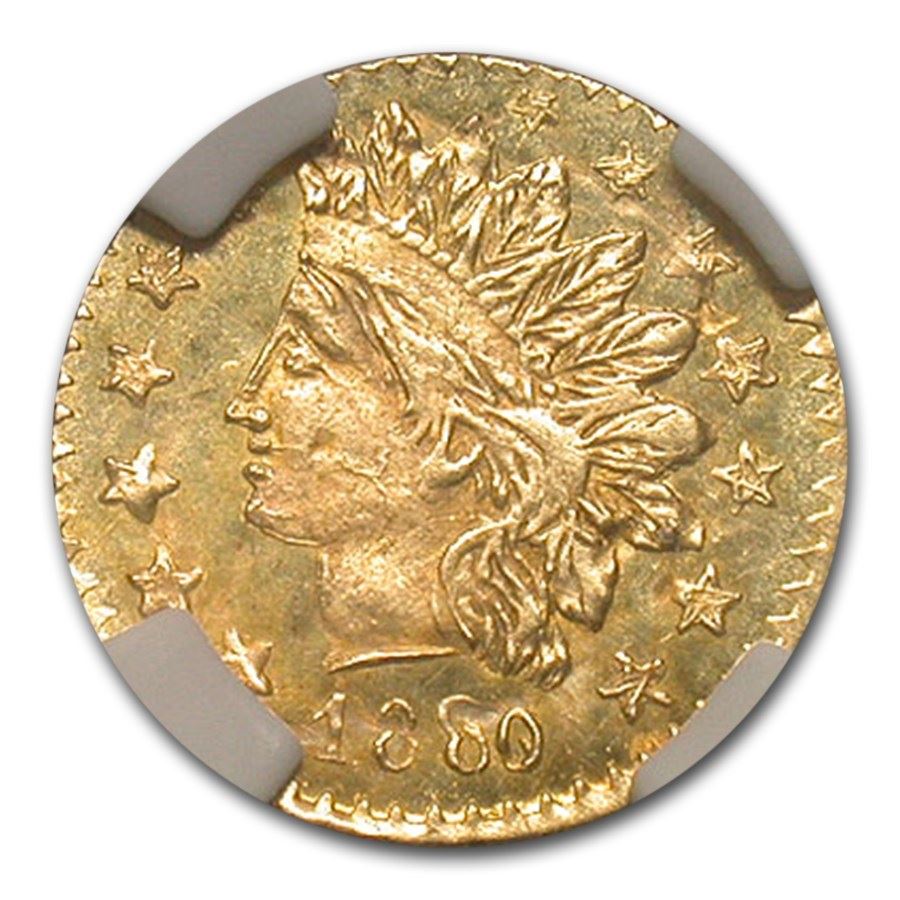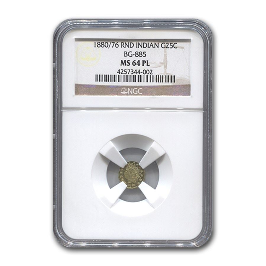 1880/76 Indian Round 25¢ Gold MS-64 NGC (PL, BG-885