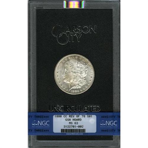 <B>1880/79-CC $1 Reverse of 1878 MS63 NGC.</B></I> . NGC Census: (327/595). PCGS Population (664/1491). Mintage: 591,000. Numismedia Wsl. Price for NGC/PCGS coin in MS63: $525. (#7108)<BR><BR><B>Coin Engraver:</B> George T. Morgan<BR><BR><b>Shipping:</b> Coins & Currency (<a target="_blank" href="http://www.heritageauctions.com/common/shipping.php">view shipping information</a>)