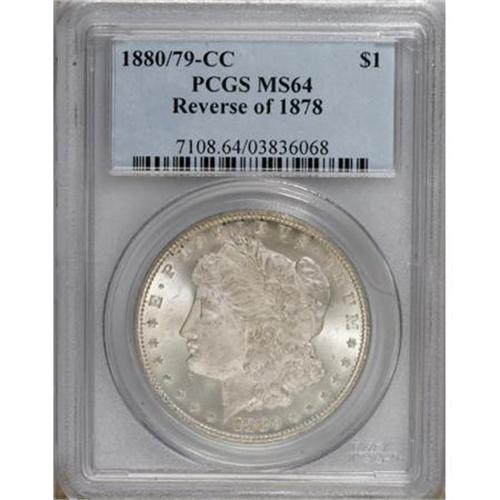 <B>1880/79-CC $1 Reverse of 1878 MS64 PCGS.</B></I> VAM-4. A Top 100 Variety. Portions of the underdigits 7 and 9 are clearly visible under 80. Light silver-gray surfaces exhibit pleasing luster and well struck devices on this pretty near-Gem.<BR><BR><B>Coin Engraver:</B> George T. Morgan<BR><BR><b>Shipping:</b> Coins & Currency (<a target="_blank" href="http://www.heritageauctions.com/common/shipping.php">view shipping information</a>)