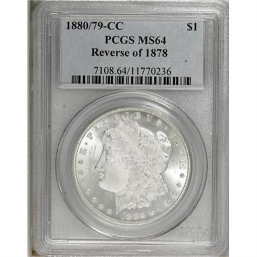 <B>1880/79-CC $1 Reverse of 1878 MS64 PCGS.</B></I> PCGS Population (981/435). NGC Census: (458/125). Mintage: 591,000. Numismedia Wsl. Price for NGC/PCGS coin in MS64: $925. (#7108)<BR><BR><B>Coin Engraver:</B> George T. Morgan<BR><BR><b>Shipping:</b> Coins & Currency (<a target="_blank" href="http://www.heritageauctions.com/common/shipping.php">view shipping information</a>)