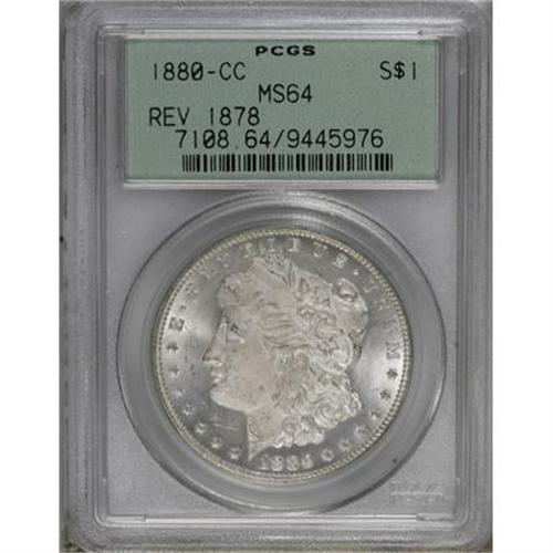 <B>1880/79-CC $1 Reverse of 1878 MS64 PCGS.</B></I> VAM-4. A Top 100 Variety. Boldly struck with an attractive coating of light rose-gray toning over both sides. The fields are flashy and semi-prooflike. A few minor marks are noted on each side. <BR><BR><B>Coin Engraver:</B> George T. Morgan<BR><BR><b>Shipping:</b> Coins & Currency (<a target="_blank" href="http://www.heritageauctions.com/common/shipping.php">view shipping information</a>)
