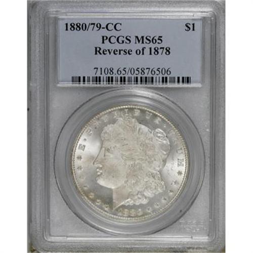 <B>1880/79-CC $1 Reverse of 1878 MS65 PCGS.</B></I> VAM-4. A Top 100 Variety. This issue has long been known as a condition rarity. This is a pleasing example that has thick, frosted mint luster with a few shallow luster grazes on the obverse. Brilliant throughout, the striking details are fully articulated in all areas. The underdigits are also clearly seen with light magnification.<BR><BR><B>Coin Engraver:</B> George T. Morgan<BR><BR><b>Shipping:</b> Coins & Currency (<a target="_blank" href="http://www.heritageauctions.com/common/shipping.php">view shipping information</a>)