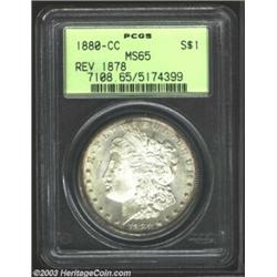 <TR><TD width="100%"><TABLE cellSpacing=1 cellPadding=3 width="100%" border=0><TBODY><TR><TD width="100%" bgColor=#79735c><FONT face=arial color=#ffffff size=3><B>Description</B> </FONT></TD></TR><TR><TD width="100%" bgColor=#ffffff><FONT face=arial size=2><B>1880/79-CC $1 Reverse of 1878 MS65 PCGS.</B></I> VAM-4. Top 100 Variety. The curves of the 7 and 9 underdigits are obvious when viewed beneath a glass. The lower reverse has a band of bright gold color. A lustrous Gem with a nearly pristine reverse, and the cheek is also extremely clean. A luster graze on the lower neck is the only conceivable distraction. </FONT></TD></TR></TBODY></TABLE></TD></TR></TBODY></TABLE><BR><A name=PricesRealized></A><TABLE cellSpacing=0 cellPadding=0 width="100%" bgColor=#000000 border=0><TBODY><TR><TD width="100%"><TABLE cellSpacing=1 cellPadding=3 width="100%" border=0><TBODY><TR><TD width="100%" bgColor=#79735c><A name=PR><FONT face=arial color=#ffffff size=3><B>Previous Prices from Heritage Auctions</B> </FONT></A></TD></TR><TR><TD bgColor=#f6f6ed><TABLE cellSpacing=0 cellPadding=0 width="100%" border=1><TBODY><TR><TD align=middle width="33%"><B>Date</B></TD><TD align=middle width="33%"><B>Service</B></TD><TD align=middle width="33%"><B>Price</B></TD></TR><TR bgColor=whitesmoke><TD width="33%"><B>01/11/2003</B></TD><TD width="33%">PCGS</TD><TD width="33%">$1,840.00</TD></TR><TR bgColor=whitesmoke><TD width="33%"><B>01/11/2003</B></TD><TD width="33%">PCGS</TD><TD width="33%">$1,725.00</TD></TR><TR bgColor=whitesmoke><TD width="33%"><B>09/28/2002</B></TD><TD width="33%">PCGS</TD><TD width="33%">$1,725.00</TD></TR><TR bgColor=whitesmoke><TD width="33%"><B>06/01/2001</B></TD><TD width="33%">PCGS</TD><TD width="33%">$1,610.00</TD></TR><TR bgColor=whitesmoke><TD width="33%"><B>06/08/2002</B></TD><TD width="33%">PCGS</TD><TD width="33%">$1,725.00</TD></TR><TR bgColor=whitesmoke><TD width="33%"><B>06/08/2002</B></TD><TD width="33%">PCGS</TD><TD width="33%">$2,300.00</TD></TR><TR bgColor=whitesmoke><TD width="33%"><B>04/27/2002</B></TD><TD width="33%">PCGS</TD><TD width="33%">$1,840.00</TD></TR><TR bgColor=whitesmoke><TD width="33%"><B>11/15/2001</B></TD><TD width="33%">PCGS</TD><TD width="33%">$1,408.75</TD></TR><TR bgColor=whitesmoke><TD width="33%"><B>10/06/2001</B></TD><TD width="33%">PCGS</TD><TD width="33%">$1,380.00</TD></TR><TR bgColor=whitesmoke><TD width="33%"><B>02/23/2001</B></TD><TD width="33%">PCGS</TD><TD width="33%">$1,380.00</TD></TR><TR bgColor=whitesmoke><TD width="33%"><B>07/18/2000</B></TD><TD width="33%">PCGS</TD><TD width="33%">$1,400.00</TD></TR><TR bgColor=whitesmoke><TD width="33%"><B>10/01/1993</B></TD><TD width="33%">PCGS</TD><TD width="33%">$1,127.50</TD></TR><TR bgColor=whitesmoke><TD width="33%"><B>06/04/1999</B></TD><TD width="33%">PCGS</TD><TD width="33%">$1,610.00</TD></TR><TR bgColor=whitesmoke><TD width="33%"><B>09/13/1997</B></TD><TD width="33%">PCGS</TD><TD width="33%">$1,437.50</TD></TR><TR bgColor=whitesmoke><TD width="33%"><B>09/24/1999</B></TD><TD width="33%">PCGS</TD><TD width="33%">$1,955.00</TD></TR><TR bgColor=whitesmoke><TD width="33%"><B>04/24/1998</B></TD><TD width="33%">PCGS</TD><TD width="33%">$1,347.50</TD></TR><TR bgColor=whitesmoke><TD width="33%"><B>07/31/1993</B></TD><TD width="33%">PCGS</TD><TD width="33%">$1,155.00</TD></TR><TR bgColor=whitesmoke><TD width="33%"><B>11/01/1998</B></TD><TD width="33%">PCGS</TD><TD width="33%">$1,725.00</TD></TR><TR bgColor=whitesmoke><TD width="33%"><B>11/01/1998</B></TD><TD width="33%">PCGS</TD><TD width="33%">$1,840.00</TD></TR><TR bgColor=whitesmoke><TD width="33%"><B>03/01/1999</B></TD><TD width="33%">PCGS</TD><TD width="33%">$1,898.00</TD></TR><TR bgColor=whitesmoke><TD width="33%"><B>03/01/1999</B></TD><TD width="33%">PCGS</TD><TD width="33%">$2,185.00</TD></TR><TR bgColor=whitesmoke><TD width="33%"><B>03/01/1999</B></TD><TD width="33%">PCGS</TD><TD width="33%">$1,725.00</TD></TR><TR bgColor=whitesmoke><TD width="33%"><B>03/01/2003</B></TD><TD width="33%">PCGS</TD><TD width="33%">$1,897.50</TD></TR><TR bgColor=whitesmoke><TD width="33%"><B>07/10/2001</B></TD><TD width="33%">NGC</TD><TD width="33%">$1,700.00</TD></TR><TR bgColor=whitesmoke><TD width="33%"><B>01/06/1993</B></TD><TD width="33%">NGC</TD><TD width="33%">$968.00</TD></TR><TR bgColor=whitesmoke><TD width="33%"><B>08/13/1999</B></TD><TD width="33%">NGC</TD><TD width="33%">$1,495.00</TD></TR><TR bgColor=whitesmoke><TD width="33%"><B>11/01/1998</B></TD><TD width="33%">NGC</TD><TD width="33%">$1,380.00</TD></TR><TR bgColor=whitesmoke><TD width="33%"><B>11/01/1998</B></TD><TD width="33%">NGC</TD><TD width="33%">$1,725.00</TD></TR><TR bgColor=whitesmoke><TD width="33%"><B>03/01/1999</B></TD><TD width="33%">NGC</TD><TD width="33%">$1,495.00</TD></TR><TR bgColor=whitesmoke><TD width="33%"><B>08/07/1999</B></TD><TD width="33%">ANACS</TD><TD width="33%">$1,380.00</TD></TR><TR bgColor=whitesmoke><TD width="33%"><B>09/18/1996</B></TD><TD width="33%">ANACS</TD><TD width="33%">$825.00</TD></TR></TBODY></TABLE></TD></TR><TR><TD bgColor=#ffffff><FONT face=arial size=1 ?>PLEASE NOTE: All prices realized reflect the final hammer price PLUS the buyer's premium in auctions that charge a buyer's premium. Each item has a notation at the top of the listing indicating whether that lot included a buyer's premium. Example: A item that sells with a final hammer price of $100 and a 20% buyer's premium will display with a price realized of $120. All information listed is intended to be as accurate as possible, but errors are possible. Please use this guide carefully and inform us of any inaccuracies. </FONT></TD></TR></TBODY></TABLE></TD></TR></TBODY></TABLE><BR><TABLE cellSpacing=0 cellPadding=0 width="100%" bgColor=#000000 border=0><TBODY><TR><TD width="100%"><TABLE cellSpacing=1 cellPadding=3 width="100%" border=0><TBODY><TR><TD width="100%" bgColor=#79735c colSpan=6><FONT face=arial color=#ffffff size=3><B>Price Guide*</B> </FONT></TD></TR><TR bgColor=#f6f6ed><TD align=middle><B>