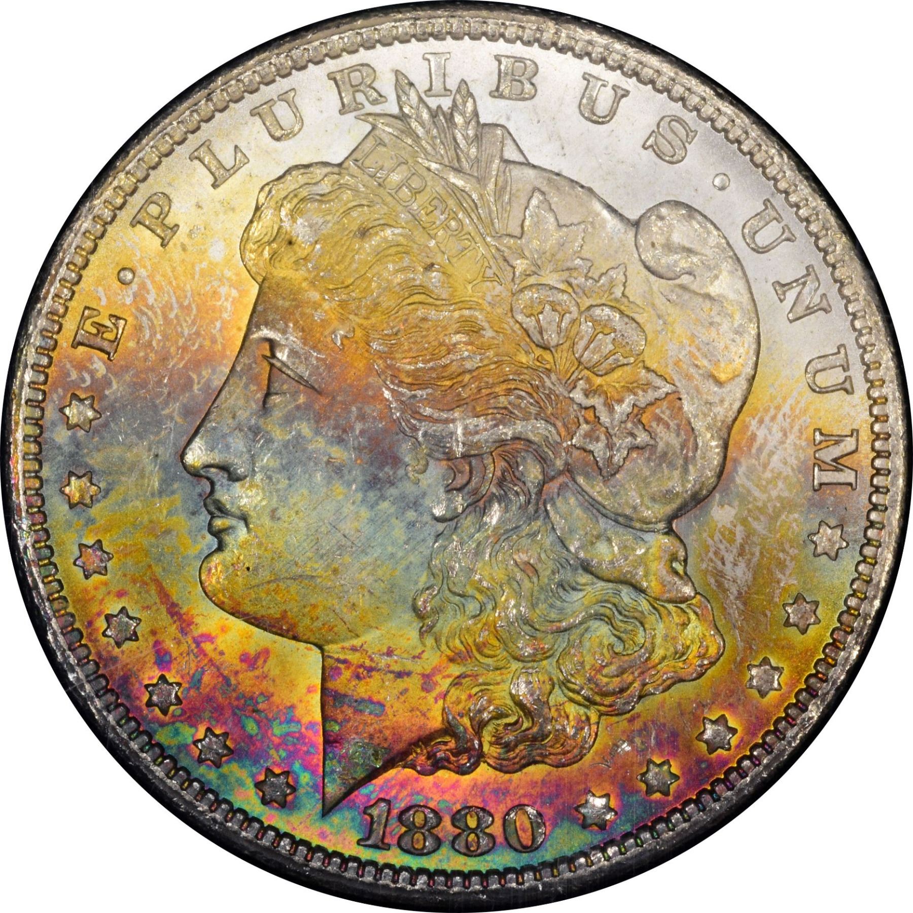 One 1880/79-CC Rev. of 78 $1 Morgan Silver Dollar Coin GSA NGC MS65 STAR Rainbow Toning.