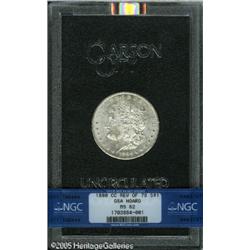<B>1880/79-CC<img border='0' src='http://www.heritagecoins.com/images/star.gif' width=10 height=10>$1 Reverse of 1878 MS62 NGC.</B></I> VAM-4. A Top 100 Variety. A hint of tan color visits each side of this lustrous piece, which is well preserved aside from typical luster grazes on the cheek. Sharply struck for this often indifferently produced issue. The box of issue is included. Lot:11052