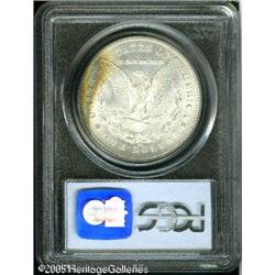 <B>1880/79-CC<img border='0' src='http://www.heritagecoins.com/images/star.gif' width=10 height=10>$1 Reverse of 1878 MS64 PCGS.</B></I> VAM-4. A Top 100 Variety. Bands of honey and sky-blue color grace the left borders of this reasonably struck and shimmering near-Gem. A moderate mark on the cheek does not deny the eye appeal. Lot:9978