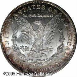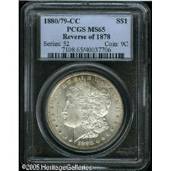 <B>1880/79-CC<img border='0' src='http://www.heritagecoins.com/images/star.gif' width=10 height=10>$1 Reverse of 1878 MS65 PCGS.</B></I> VAM-4. A Top 100 Variety. Well struck for this scarcer Carson City date, peripheral glimpses of golden-brown and sea-green patina further add to the charm of this lustrous and attractively preserved Gem. The most obvious overdate within the Morgan Dollar series, both the 7 and 9 underdigits are unmistakable within the final 80 digits of the date. Lot:9980