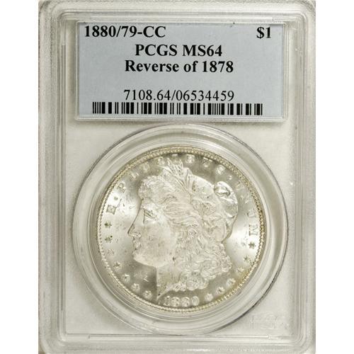 <B>1880/79-CC S$1 Reverse of 1878 MS64 PCGS.</B></I> VAM-4. A Top 100 Variety. The overdate is plain under magnification. This Choice and suitably struck example has light spots of milky patina in its highly lustrous fields.<BR><BR><b>Shipping:</b> Coins & Currency (<a target="_blank" href="http://www.heritageauctions.com/common/shipping.php">view shipping information</a>)