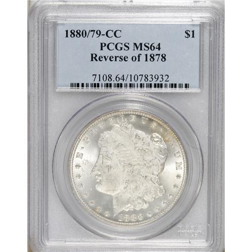 <B>1880/79-CC S$1 Reverse of 1878 MS64 PCGS.</B></I> VAM-4. A Top 100 Variety. A sharply struck Choice CC-mint dollar that has a clean reverse and a vibrant luster. Hints of gold toning deny full brilliance.<BR><BR><b>Shipping:</b> Coins & Currency (<a target="_blank" href="http://www.heritageauctions.com/common/shipping.php">view shipping information</a>)