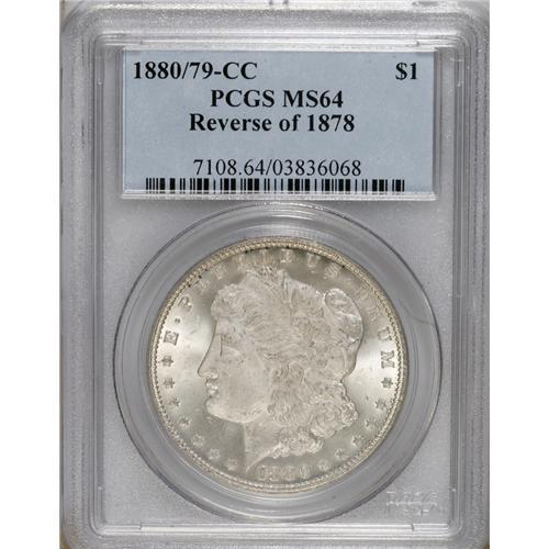 <B>1880/79-CC S$1 Reverse of 1878 MS64 PCGS.</B></I> VAM-4. A Top 100 Variety. Portions of the underdigits 7 and 9 are clearly visible under 80. Light silver-gray surfaces reveal pleasing luster and well struck devices.<BR><BR><b>Shipping:</b> Coins & Currency (<a target="_blank" href="http://www.heritageauctions.com/common/shipping.php">view shipping information</a>)
