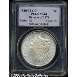 <B>1880/79-CC<S$1> Reverse of 1878 MS64 PCGS.</B></I> Sharply struck, with light-gray toning. A few light ticks and scuff marks limit the grade. <BR><BR><B>Important notice:</B> Heritage usually auctions material at the rate of 200-250 lots per hour. On some occasions eBay Live bid software or the Internet may not be able to keep up with the pace of the auction. We recommend placing a realistic absentee bid now as insurance to avoid disappointment. Occasionally the auctioneer may eliminate or reject an eBay Live bid, and the auctioneer may also reopen a lot after the close of the eBay live bidding (usually because we missed an audience bid), and may reject your bid even if it shows you as the winning bidder. By bidding via eBay Live, you agree that Heritage may award the lot to another bidder at its sole discretion under the circumstances described above or any other reasonable circumstances. Since eBay bids are not shown to us until we open the lot on the floor, we treat those bids just like floor bids. In most cases the floor responds before the eBay bid is presented to us, due to Internet lag time, so for consistency we have made it a policy that floor bids are always considered first over tie eBay live bids. Also please note that all Heritage lots purchased through eBay Live carry a 20% Buyer's Premium. Please make sure you read the Terms and Conditions before you bid.