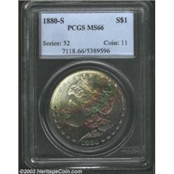 <TABLE cellSpacing=0 cellPadding=0 width="100%" bgColor=#000000 border=0><TBODY><TR><TD width="100%"><TABLE cellSpacing=1 cellPadding=3 width="100%" border=0><TBODY><TR><TD width="100%" bgColor=#79735c><FONT face=arial color=#ffffff size=3><B>Description</B> </FONT></TD></TR><TR><TD width="100%" bgColor=#ffffff><FONT face=arial size=2><B>1880/79-S $1 MS66 PCGS.</B></I> VAM-8. Top 100 Variety. The overdate feature is not listed on the PCGS insert, but the diagonal die fill lines within the upper loop of the second 8 in the date affirm the variety. The obverse has lovely bands of violet and sea-green patina, while the reverse has peripheral gold and powder-blue hues. </FONT></TD></TR></TBODY></TABLE></TD></TR></TBODY></TABLE><BR><A name=PricesRealized></A><TABLE cellSpacing=0 cellPadding=0 width="100%" bgColor=#000000 border=0><TBODY><TR><TD width="100%"><TABLE cellSpacing=1 cellPadding=3 width="100%" border=0><TBODY><TR><TD width="100%" bgColor=#79735c><A name=PR><FONT face=arial color=#ffffff size=3><B>Previous Prices from Heritage Auctions</B> </FONT></A></TD></TR><TR><TD bgColor=#f6f6ed><TABLE cellSpacing=0 cellPadding=0 width="100%" border=1><TBODY><TR><TD align=middle width="33%"><B>Date</B></TD><TD align=middle width="33%"><B>Service</B></TD><TD align=middle width="33%"><B>Price</B></TD></TR><TR bgColor=whitesmoke><TD width="33%"><B>10/06/1999</B></TD><TD width="33%">PCGS</TD><TD width="33%">$250.00</TD></TR><TR bgColor=whitesmoke><TD width="33%"><B>11/19/1999</B></TD><TD width="33%">PCGS</TD><TD width="33%">$230.00</TD></TR><TR bgColor=whitesmoke><TD width="33%"><B>01/11/2003</B></TD><TD width="33%">NGC</TD><TD width="33%">$345.00</TD></TR><TR bgColor=whitesmoke><TD width="33%"><B>10/23/2001</B></TD><TD width="33%">NGC</TD><TD width="33%">$350.00</TD></TR><TR bgColor=whitesmoke><TD width="33%"><B>05/03/2003</B></TD><TD width="33%">ANACS</TD><TD width="33%">$333.50</TD></TR></TBODY></TABLE></TD></TR><TR><TD bgColor=#ffffff><FONT face=arial size=1 ?>PLEASE NOTE: All prices realized reflect the final hammer price PLUS the buyer's premium in auctions that charge a buyer's premium. Each item has a notation at the top of the listing indicating whether that lot included a buyer's premium. Example: A item that sells with a final hammer price of $100 and a 20% buyer's premium will display with a price realized of $120. All information listed is intended to be as accurate as possible, but errors are possible. Please use this guide carefully and inform us of any inaccuracies. </FONT></TD></TR></TBODY></TABLE></TD></TR></TBODY></TABLE><BR><TABLE cellSpacing=0 cellPadding=0 width="100%" bgColor=#000000 border=0><TBODY><TR><TD width="100%"><TABLE cellSpacing=1 cellPadding=3 width="100%" border=0><TBODY><TR><TD width="100%" bgColor=#79735c colSpan=6><FONT face=arial color=#ffffff size=3><B>Price Guide*</B> </FONT></TD></TR><TR bgColor=#f6f6ed><TD align=middle><B>Grade</B> </TD><TD align=middle><B>Coin World<BR>(Trends)</B> </TD><TD align=middle><B>Numismedia<BR>Retail</B> </TD><TD align=middle><B>Numismedia<BR>Wholesale</B> </TD><TD align=middle><B>Coin<BR>Universe</B> </TD><TD align=middle><B>Heritage<BR>Value Index</B> </TD></TR><TR bgColor=#ffffff><TD align=middle>65</TD><TD align=right>---</TD><TD align=right>---</TD><TD align=right>---</TD><TD align=right>$176.00</TD><TD align=right>$136.93</TD></TR><TR style="FONT-WEIGHT: bold" bgColor=#cccfdd><TD align=middle>66</TD><TD align=right>---</TD><TD align=right>---</TD><TD align=right>---</TD><TD align=right>$490.00</TD><TD align=right>$351.50</TD></TR><TR bgColor=#ffffff><TD align=middle>67</TD><TD align=right>---</TD><TD align=right>---</TD><TD align=right>---</TD><TD align=right>---</TD><TD align=right>---</TD></TR><TR bgColor=#ffffff><TD colSpan=6><FONT size=1>*All information listed is intended to be as accurate as possible, but errors are possible. No item may be returned or refused based on this information which is provided as a service to our customers. You should contact each pricing source directly to determine the accuracy of this information. </FONT></TD></TR></TBODY></TABLE></TD></TR></TBODY></TABLE><BR><TABLE cellSpacing=0 cellPadding=0 width="100%" bgColor=#000000 border=0><TBODY><TR><TD width="100%"><TABLE cellSpacing=1 cellPadding=3 width="100%" border=0><TBODY><TR><TD width="100%" bgColor=#79735c><FONT face=arial color=#ffffff size=3><B>Population Guide</B> </FONT></TD></TR><TR bgColor=#ffffff><TD align=middle><!-- Begin Output of Population Grid--><TABLE cellSpacing=0 cellPadding=0 width="100%" border=0><TBODY><TR><TD vAlign=center><TABLE cellSpacing=0 width="100%" border=1 cellsadding="3"><TBODY><TR><TD vAlign=center><TABLE cellSpacing=0 cellPadding=3 width="100%" border=1><TBODY><TR><TD vAlign=center align=middle bgColor=#f0f1e8 colSpan=2 <CENTER><FONT face=Arial size=2><B>PCGS Pop </B></FONT><CENTER></CENTER></TD><TD vAlign=center align=middle bgColor=#f0f1e8 colSpan=2><CENTER><FONT face=Arial size=2><B>NGC Pop</B></CENTER></FONT></TD></TR><TR><TD vAlign=center><FONT face=Arial size=2>(66)</FONT> </TD><TD vAlign=center align=right><FONT face=Arial size=2>29</FONT> </TD><TD vAlign=center><FONT face=Arial size=2>(66)</FONT> </TD><TD vAlign=center align=right><FONT face=Arial size=2>0</FONT> </TD></TR><TR><TD vAlign=center><FONT face=Arial size=2>(>66)</FONT> </TD><TD vAlign=center align=right><FONT face=Arial size=2>6</FONT> </TD><TD vAlign=center><FONT face=Arial size=2>(>66)</FONT> </TD><TD vAlign=center align=right><FONT face=Arial size=2>0</FONT> </TD></TR></TBODY></TABLE></TD></TR></TBODY></TABLE></TD></TR></TBODY></TABLE><!-- End Output of Population Grid--> Important notice: Heritage usually auctions material at the rate of 200-250 lots per hour. On some occasions eBay Live bid software or the Internet may not be able to keep up with the pace of the auction. We recommend placing a realistic absentee bid now as insurance to avoid disappointment. Occasionally the auctioneer may eliminate or reject an eBay Live bid, and 