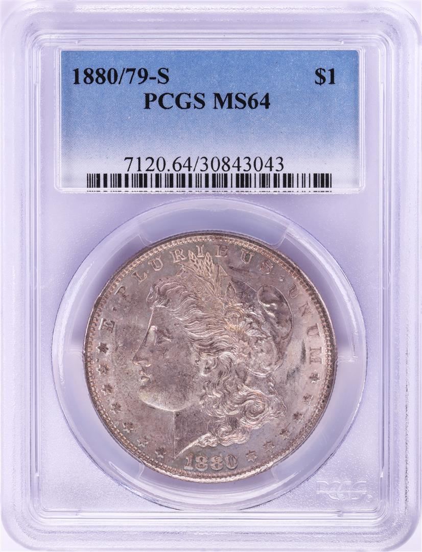 One 1880/79-S $1 Morgan Silver Dollar Coin PCGS MS64 Nice Toning. PCGS Graded.