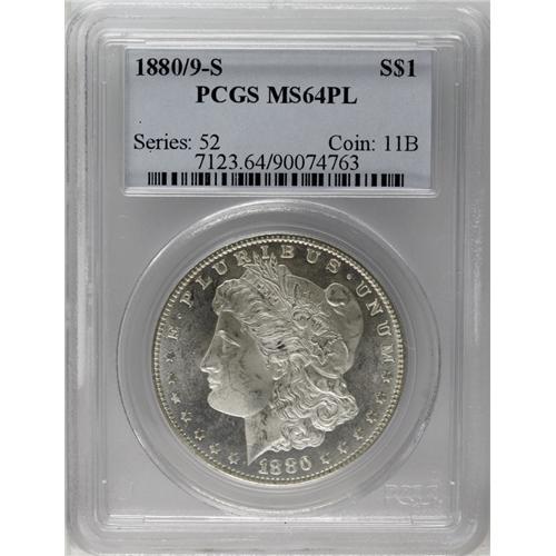<B>1880/79-S<img border='0' src='http://www.heritagecoins.com/images/star.gif' width=10 height=10>$1> MS64 Prooflike PCGS.</B></I> VAM-11. A Hot 50 Variety. Thickly frosted and essentially brilliant. Great luster and a strong strike, characteristic of the issue, appear here. Luster grazes on Liberty's cheek help define the grade.<BR><I>From The Chicago-Ark Collection.</B></I>