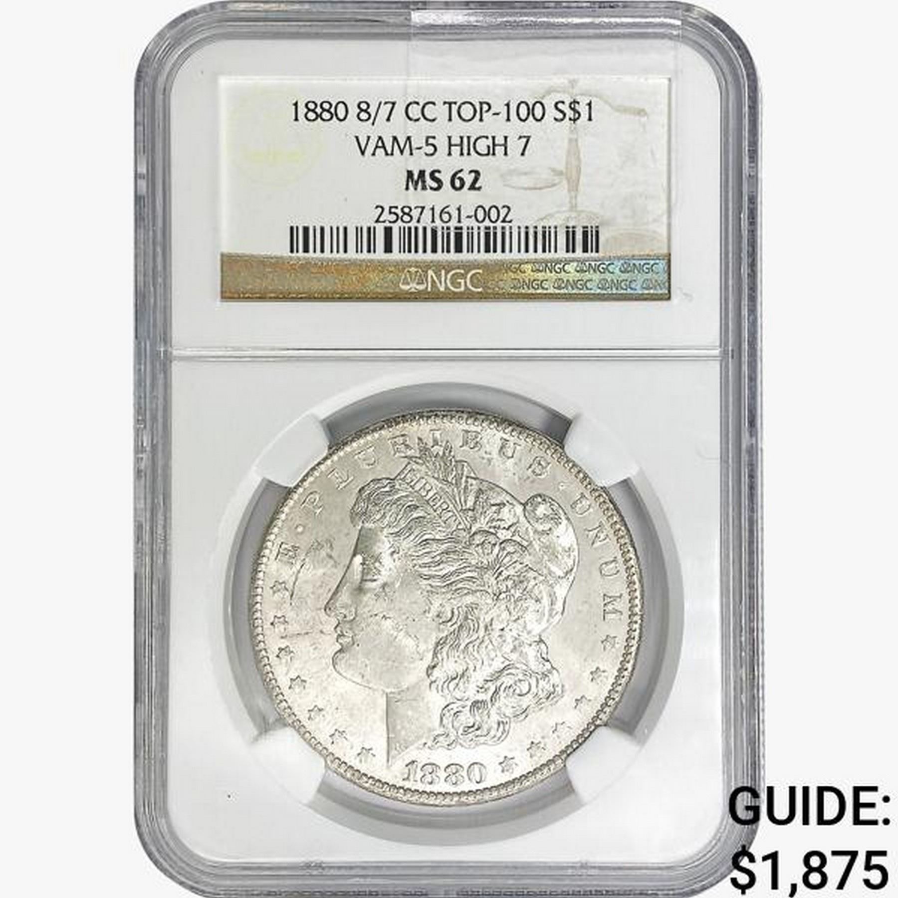 1880 8/7 CC Morgan Silver Dollar NGC MS62 VAM-5 High 7