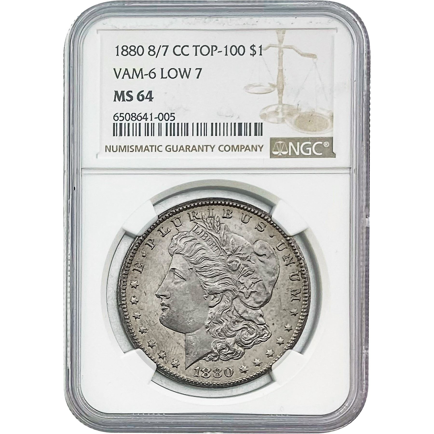 1880 8/7-CC Morgan Silver Dollar NGC MS64 VAM-6 Low 7