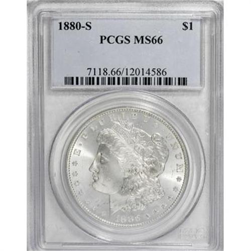 <B>1880/79-S $1 MS66 PCGS</B></I>.<B> VAM-11. A Hot 50 Variety.</B></I> The VAM and overdate are undesignated on the holder.<BR><BR><B>Coin Engraver:</B> George T. Morgan<BR><BR><b>Shipping:</b> Coins & Currency (<a target="_blank" href="http://www.heritageauctions.com/common/shipping.php">view shipping information</a>)