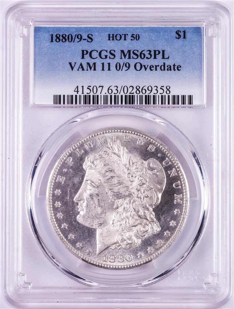 One 1880/9-S VAM 11 0/9 Overdate Hot 50 $1 Morgan Silver Dollar Coin PCGS MS63PL. PCGS Graded.
