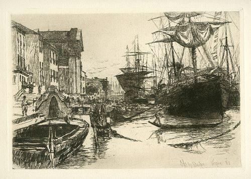 Bacher Original Etching "View In Venice" - Medium: Original Etching. Executed In 1880, This Is A Rich, Dark Impression On Laid Paper. Size: 7 X 10 1/4 Inches (Plate) - Professionally Framed & Matted - Comes With Certificate - -