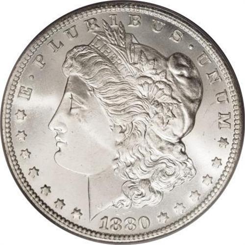 <B>1880-CC $1 8/7 Reverse of 1878 MS66 PCGS.</B></I> VAM-7. A less dramatic overdate variety than some of the others from the Carson City Mint this year. VAM-7 is distinguished by the presence of a slight dash under the second 8 in the date. This Reverse of 1878 has seven tail feathers, a concave eagle's breast, parallel arrow feathers, and small CC. David Bowers, in his Silver and Trade dollar reference work (1993), says: "Probably about 10% to 20% of surviving 1880-CC Morgan dollars in Mint State are of this type.<BR> A well directed strike imparts excellent definition to the design elements of this Premium Gem example, including the hair over Liberty's ear and the eagle's breast feathers. Highly lustrous surfaces are essentially untoned and well cared for, revealing just a few minor luster grazes.<BR><BR><B>Coin Engraver:</B> George T. Morgan<BR><BR><b>Shipping:</b> Coins & Currency (<a target="_blank" href="http://www.heritageauctions.com/common/shipping.php">view shipping information</a>)