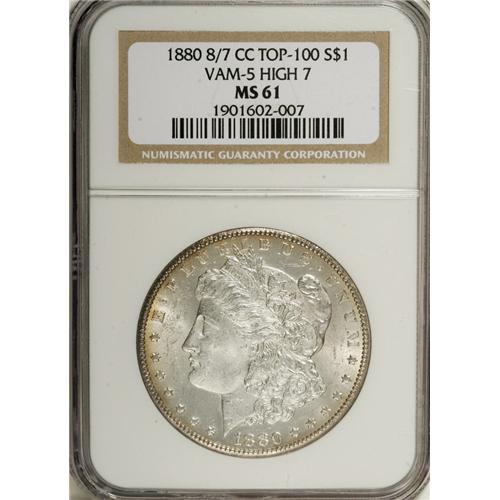 1880-CC $1 8 Over High 7 MS61 NGC. Vam-5, Top-100.