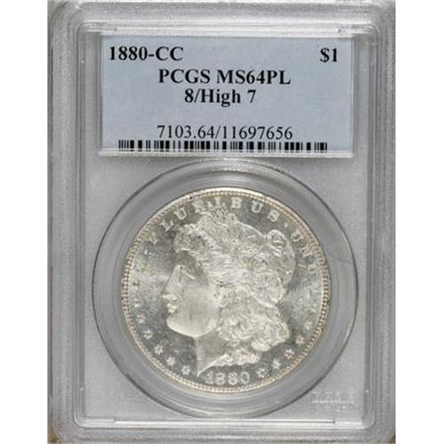 1880-CC $1 8 Over High 7 MS64 Prooflike PCGS.